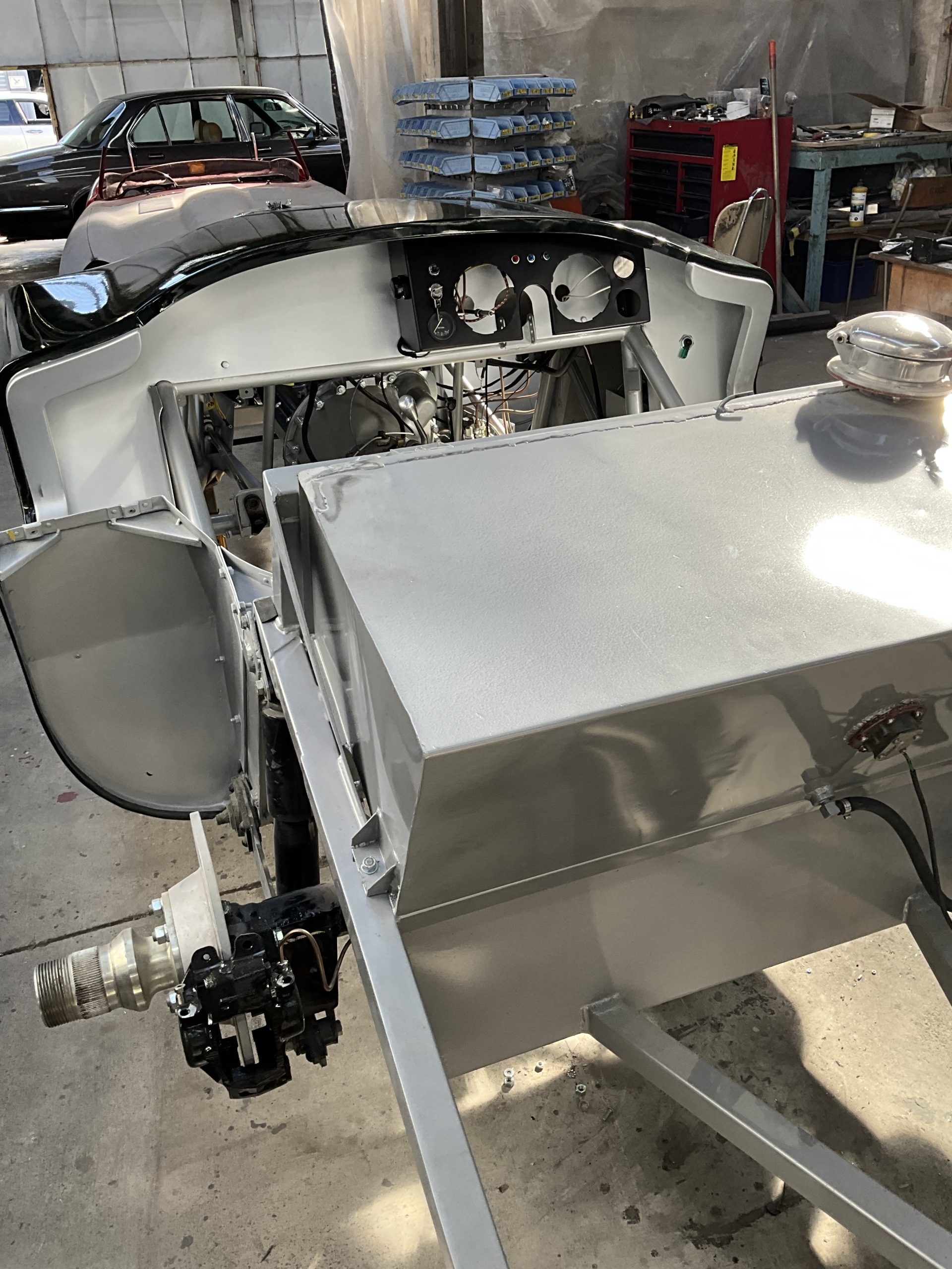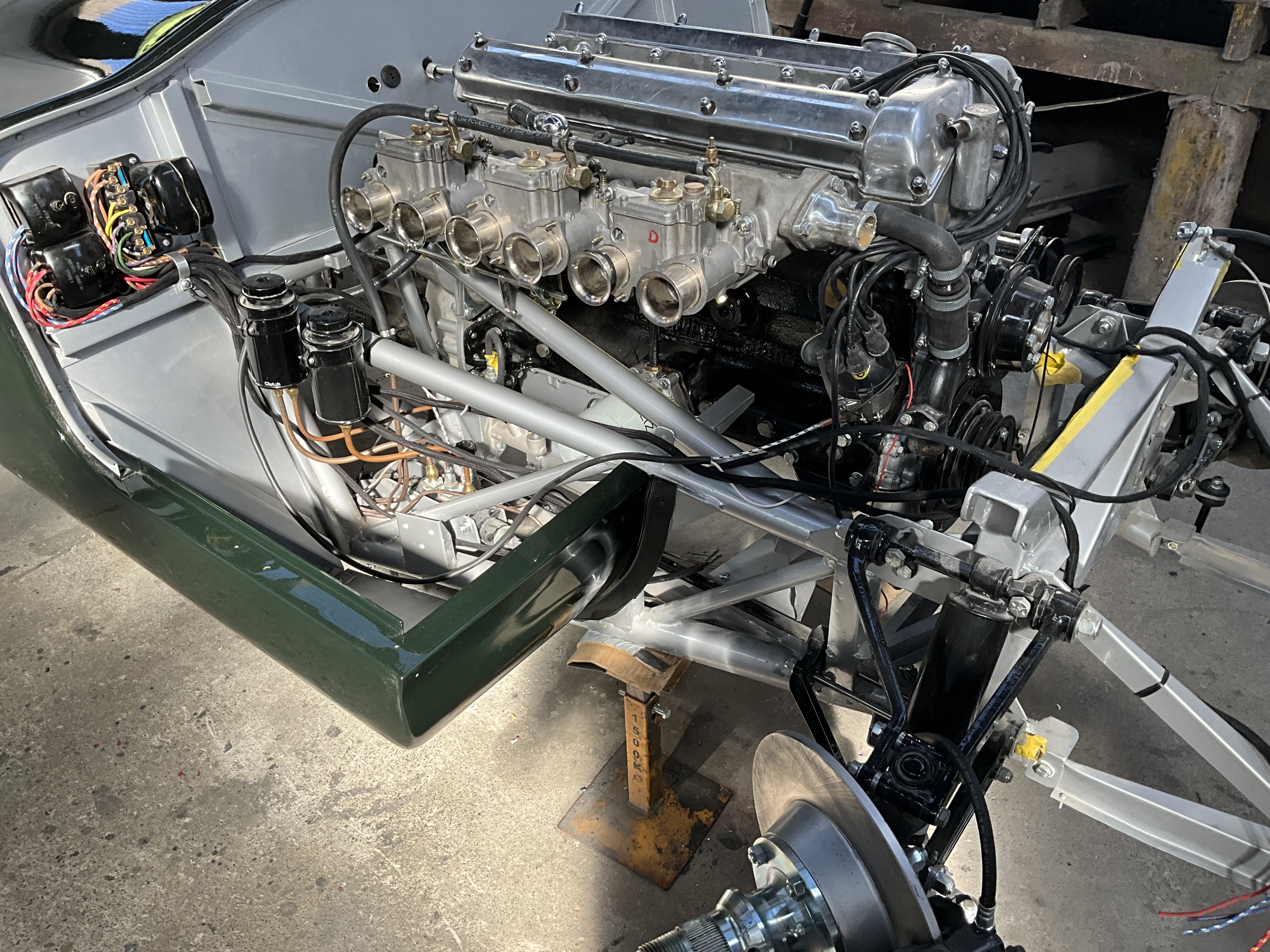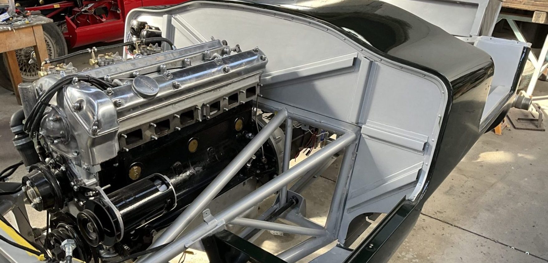 We have a Jaguar C-Type replica in our shop nearing completion. Hand built with a period correct aluminium body finished in British Racing Green, and original style spaceframe chassis and mechanical components.